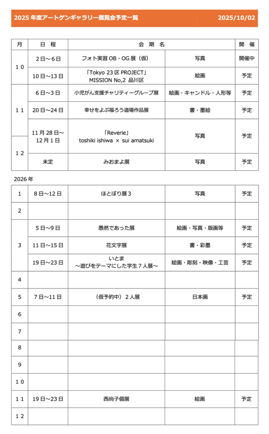 ギャラリーからのお知らせ